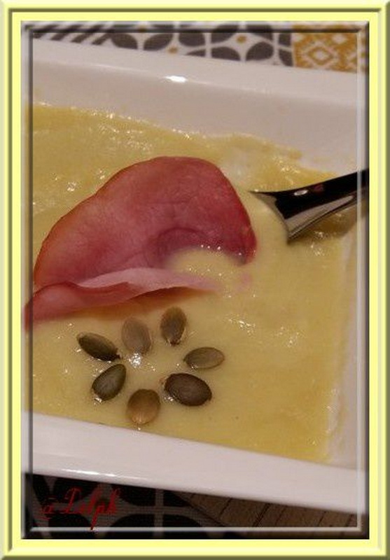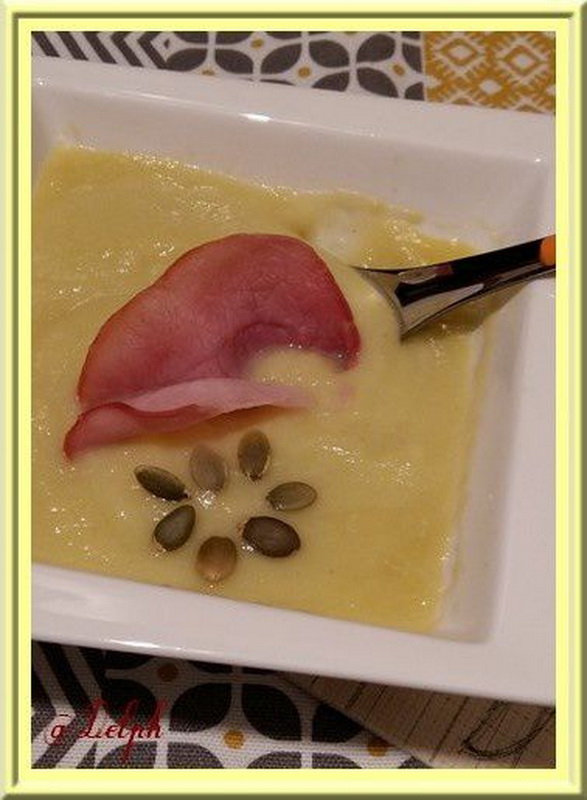 - Saupoudrer le velouté de Cerfeuil et mettre votre chips de bacon.
