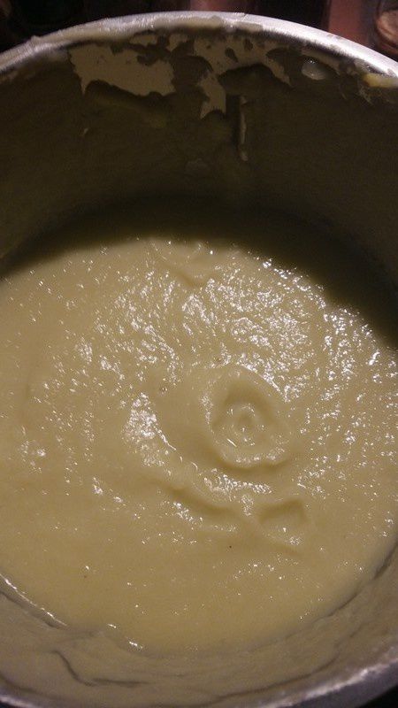 - Éplucher les légumes. Dans une casserole, faire revenir l’oignon émincé dans 20 g de beurre. Ajouter le poireau émincé, puis les panais coupé en morceaux et le cube de bouillon de volaille. Couvrir d’eau à hauteur. Porter à ébullition, et laisser cuire environ 15 min.