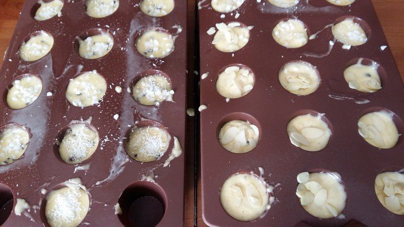- Verser la préparation dans des empreintes à mini- muffins, bien huilées et ne remplir qu’au 2/3..