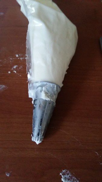 Au moment de déposer la chantilly, impossible de trouver ma douille St honoré ( sûrement passée à la poubelle avec mes poches à douille jetables), donc j’ai utilisé une poche à douille ronde et cannelée…Dommage cela ne fait pas le même effet.