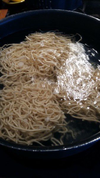 - Cuire les nouilles chinoises dans une eau bouillante assaisonnée de gros sel, pendant environ 6 minutes.