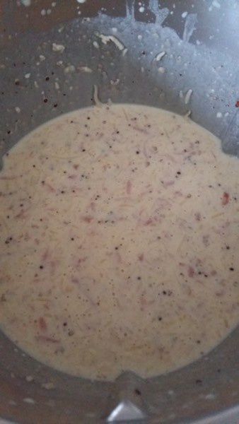 - Ajouter le jambon râpé, le comté râpé , saler et poivrer puis mélanger 20sec/couteau inversé/Vit3.