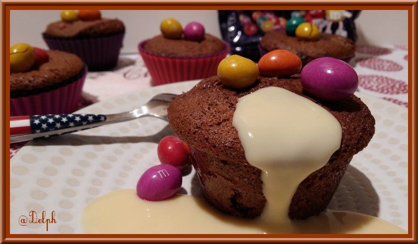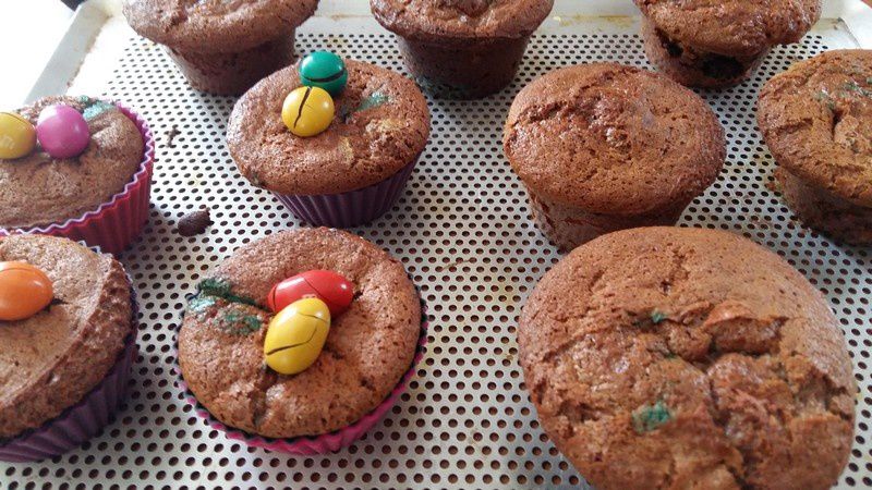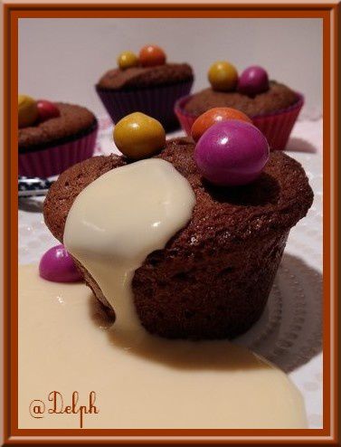 - Beurrer et fariner des petits moules individuels, y verser la pâte et cuire 15 minutes environ à four moyen. Juste avant la fin de la cuisson, déposer sur le dessus de chaque gâteau des M&M’s.