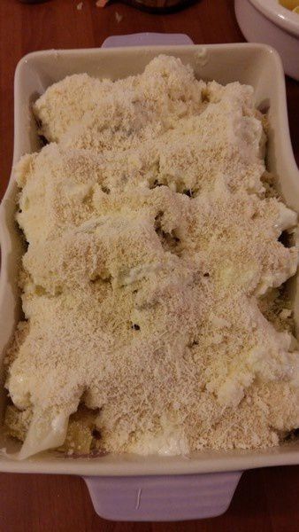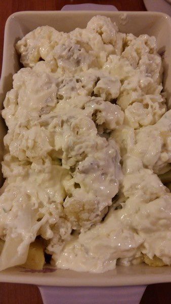 - Couvrir avec les oignons et l’ail, terminer par le chou-fleur à la crème.