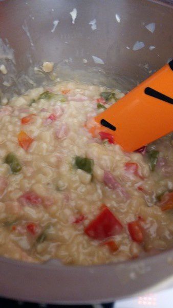 - Ajouter le Beaufort râpé puis mélanger avec la spatule.