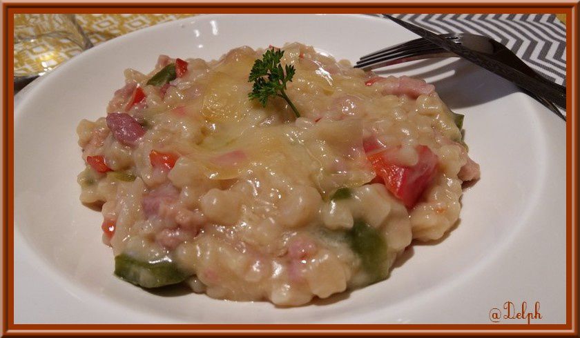 Nous adorons les risottos à la maison, mais cette fois j’ai eu envie de changer et de mettre des Crozets à la place du riz. C’est un petit plat simple et assez rapide à préparer surtout avec le Thermomix. Vous pourrez le réaliser avec une bonne sauteuse mais il faudra bien mélanger pour que cela n’accroche pas.