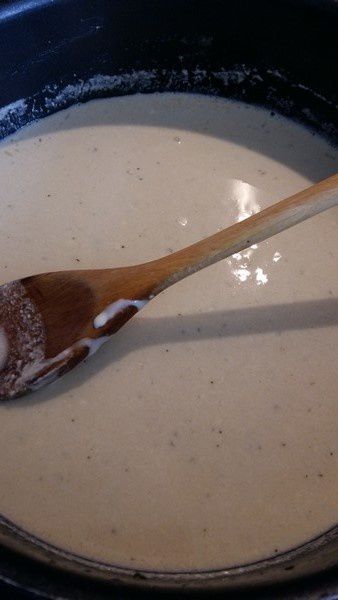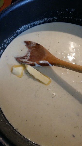 - Passer le jus de cuisson à l’étamine, puis le réduire, ajouter la crème et réduire à la nappe, enfin ajouter du beurre et mélanger. Rectifier l’assaisonnement.