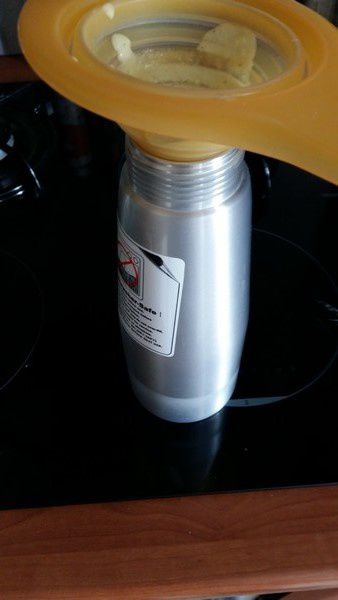 - Verser la crème obtenue (il faut qu’elle soit parfaitement lisse) dans le siphon.
