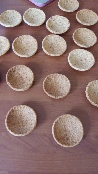- Faire chauffer pendant environ 15 minutes, ne surtout pas toucher à la sortie du four car la pâte est très friable et risquerait de casser, attendre au moins 20 minutes avant de récupérer vos tartelettes.