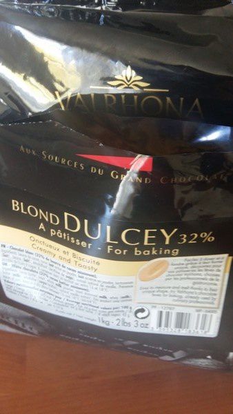 - Faire chauffer votre crème avec le sel, peser votre chocolat, puis verser votre crème sur le chocolat Dulcey, mixer.
