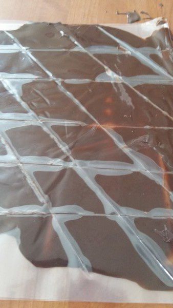 - Étaler le chocolat entre 2 feuilles guitare en lissant bien avec un rouleau.