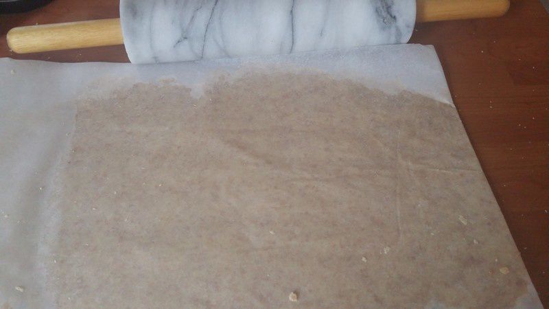 - Étaler la pâte entre deux feuilles de papier sulfurisé, mettre au réfrigérateur pour que le beurre cristallise.
