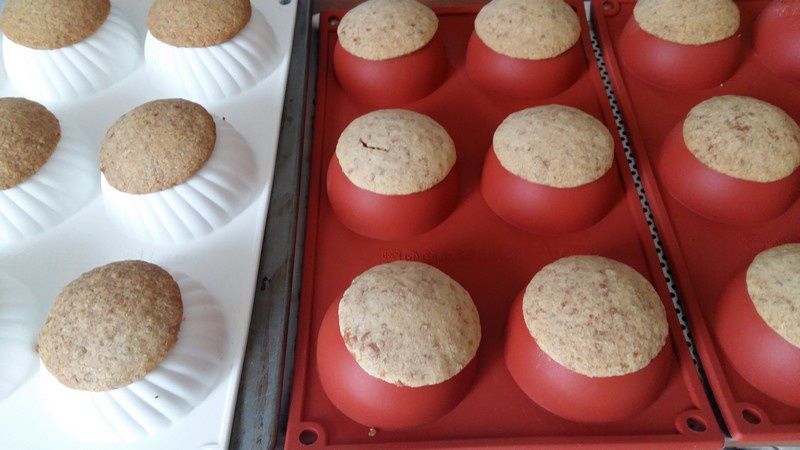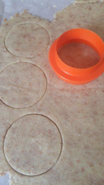 - Au bout de 30 minutes, à l’aide d’un emporte-pièce de 6 cm de diamètre poser les bouts de pâtes à plat sur vos dômes en silicone.