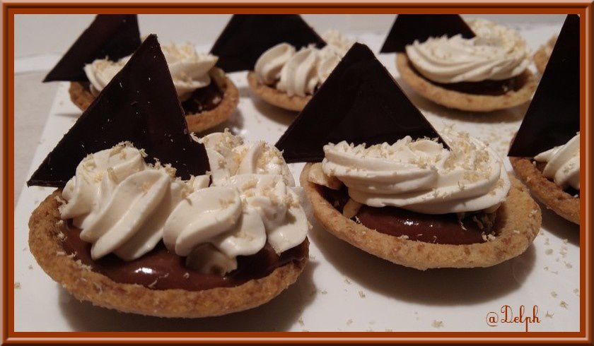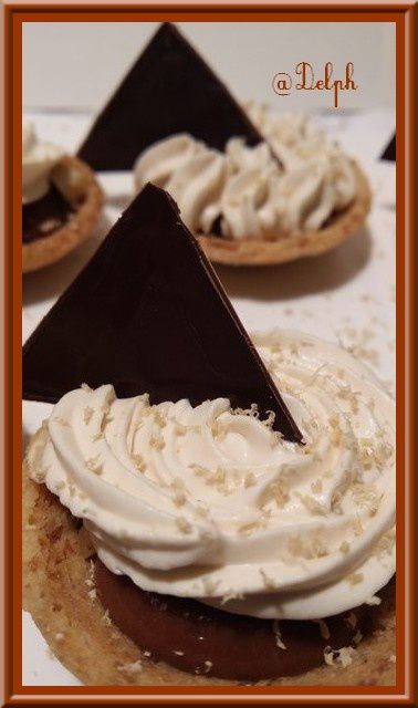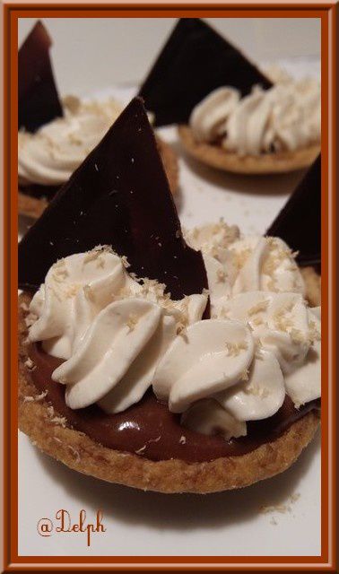 - Monter votre chantilly Dulcey, j’ai utilisé mon speedy chef, puis à l’aide d’une poche à douille dentelée coiffer vos tartelettes de cette chantilly.