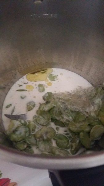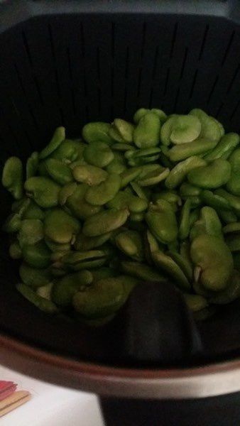 2. Mettre vos fèves dans votre panier cuisson, verser l’eau dans le bol avec le bouillon cube, insérer le panier cuisson puis faire chauffer 20min/Varoma/Vit mijotage.