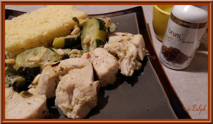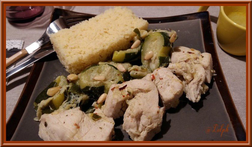 4. Dresser le poulet et les courgettes, servir avec un peu de couscous.