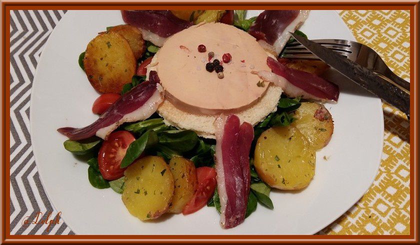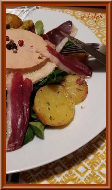 - Mettre au milieu votre pain de mie toasté, votre fois gras par dessus avec un peu de fleur de sel puis disposer vos pommes de terre au dernier moment.