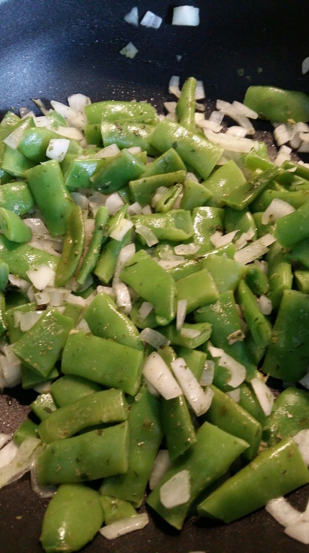 - Verser l’huile dans le Wok , y mettre les mange-tout et les asperges, puis les oignons tiges laisser à feu très doux pendant 10 bonnes minutes.
