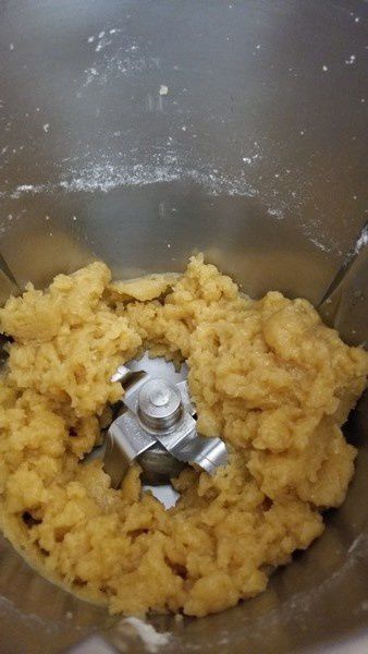 - Ajouter la farine, la levure, le bicarbonate, la pincée de sel, l’œuf et l’arôme vanille puis mélanger 20sec/Vit4.