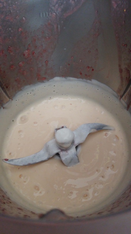 - Mettre le fromage blanc et les jaunes d’œufs puis mélanger 25sec/Vit3., ajouter le coulis réservé puis mélanger 20sec/Vit3.