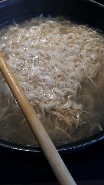 - Pendant ce temps faire cuire les pâtes dans de l’eau bouillante salée quelques minutes. Les égoutter et les maintenir au chaud.