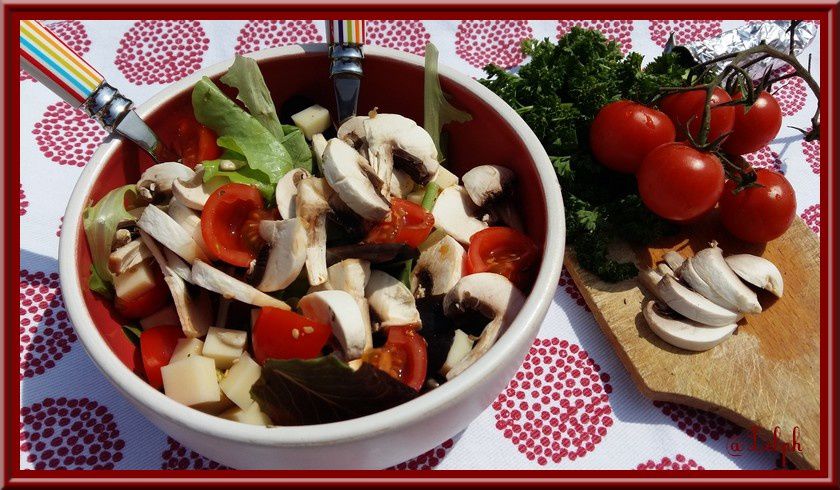 J’adore cette saison, car je peux manger des salades de toutes sortes, et le comble du bonheur c’est lorsque je peux les manger sur ma terrasse…Hum vive les beaux jours.