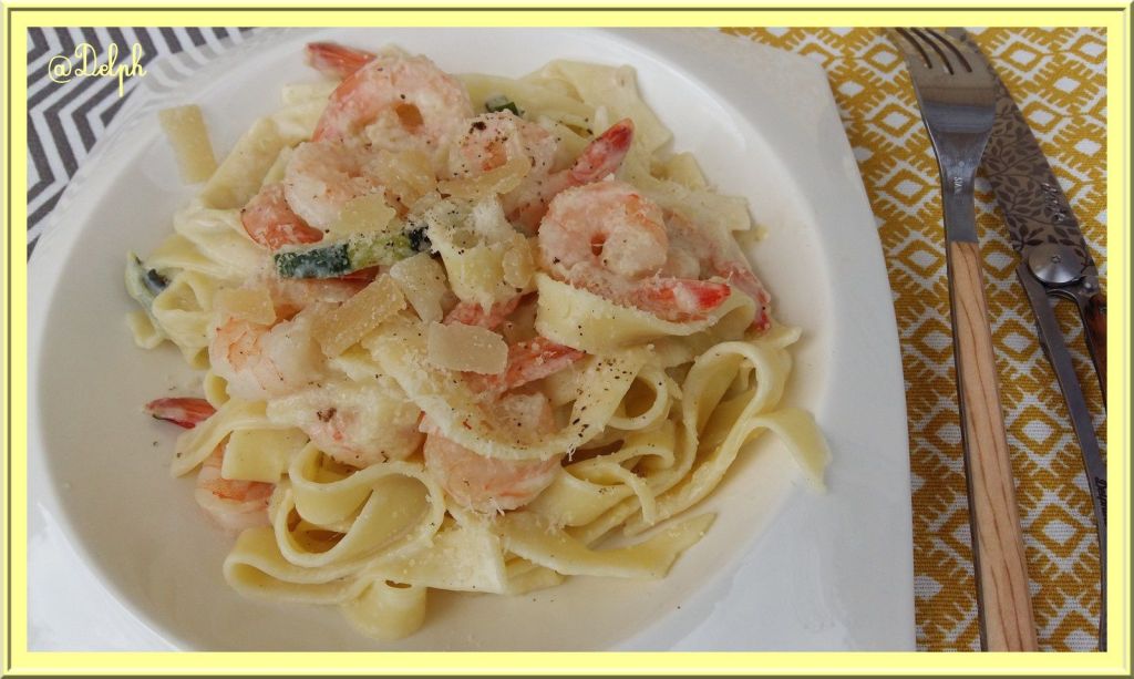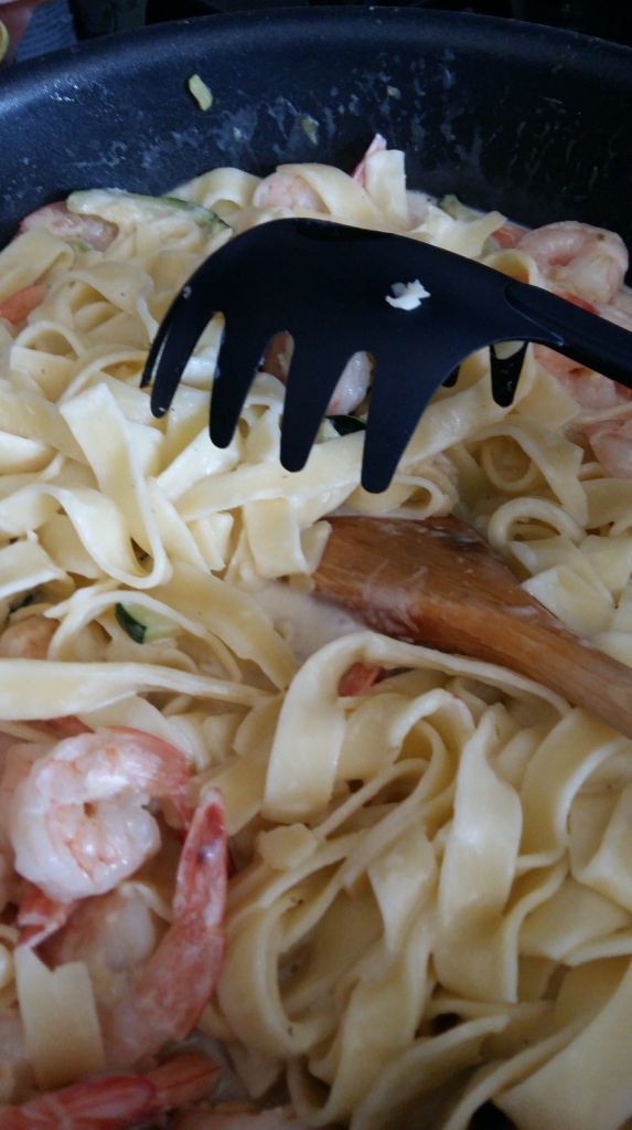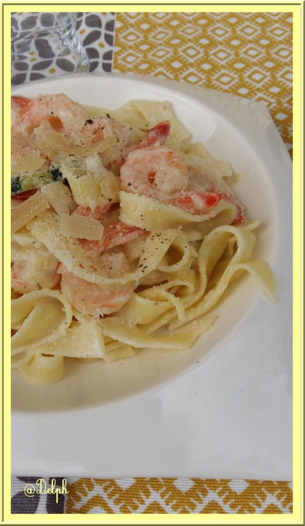 - Égoutter vos pâtes, les disposer dans l’assiette et napper votre mélange crevettes lait de coco par-dessus.