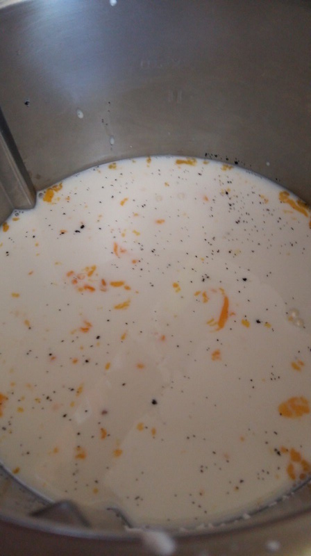 - Faire chauffer le lait avec la gousse de vanille fendue et grattée.