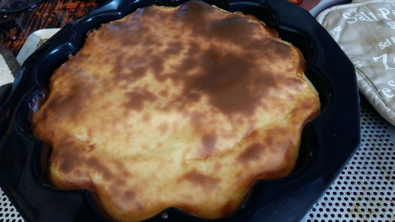 - A la sortie du four, le flan paraîtra cuit sur le dessus mais tremblotant.