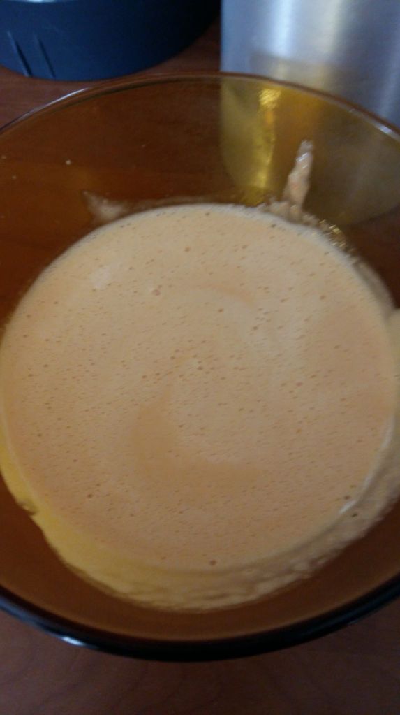 - Mettre la crème et les rondelles de chorizo dans le bol et faire chauffer 3min/100°C/Vit1, laisser infuser dans le bol une dizaine de minutes, puis mixer 30sec/Vit7.