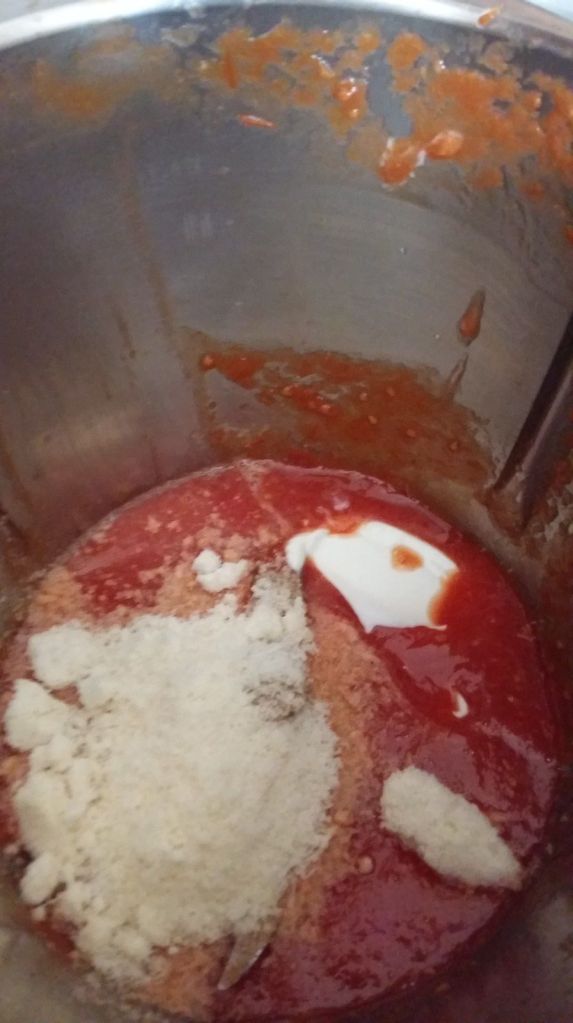 - A la sonnerie, ajouter le parmesan et la crème fraîche puis mixer 45sec/Vit7.