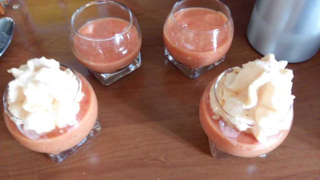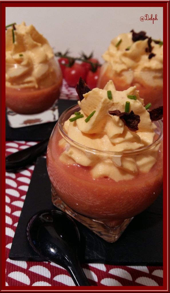 - Mettre un peu de crème de tomate tiède, recouvrir de chantilly.