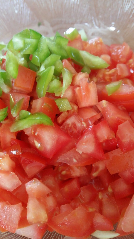 4. Couper également le piment en petits morceaux (enlever les graines pour qu’il soit moins fort