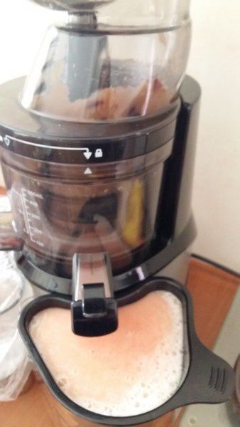 - Tout mettre dans l’ouverture de votre extracteur, puis laisser votre jus couler, si vous ne souhaitez pas garder de pulpe, il faudra ajouter la grille.