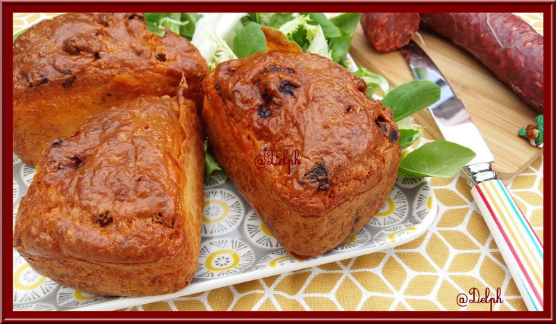 Mon fils adore le chorizo et lorsqu’il rentre le week-end, j’essaye de lui faire plaisir, je lui ai donc fait ces petits cakes, il s’est régalé.