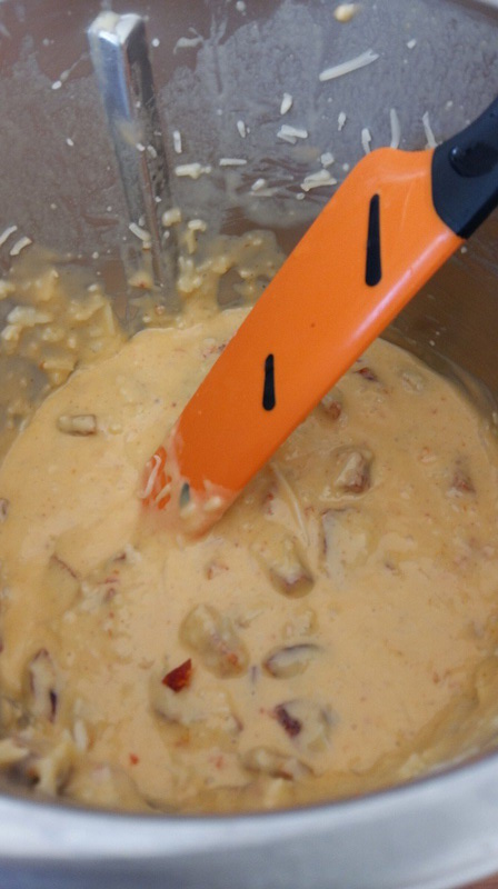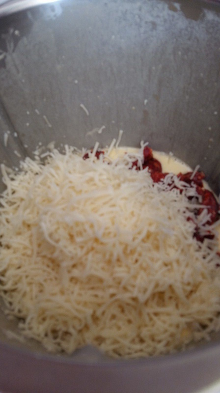 3. Couper le chorizo en petits dés les ajouter à la pâte avec le Comté, saler poivrer puis mélanger 40sec/couteau inversé/Vit3.