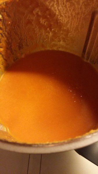 - Ajouter la purée de tomates, les pommes de terre, le bouillon de légumes puis faire chauffer 15min/100°C/Vit mijotage.