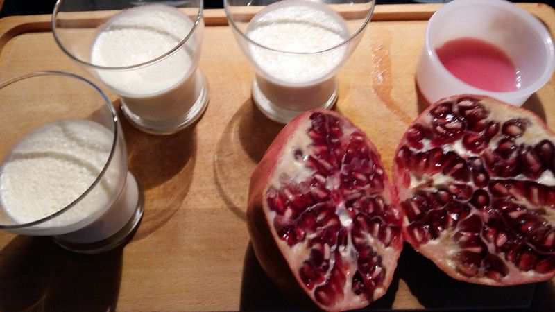 - Récupérer les petits graines de la grenade et au moment de servir, les parsemer sur les verrines.