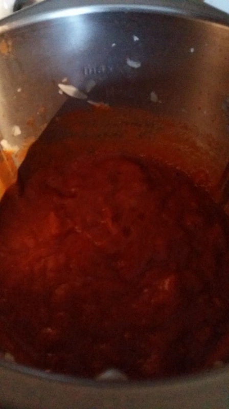 - Ajouter la sauce tomate et 1/2 gobelet d’eau, le sel poivre et le cumin, puis faire chauffer 5min/90°C/Vit2.