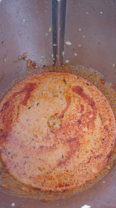 - Ajouter la crème liquide et faire chauffer 5 min/90°C/couteau inversé/Vit mijotage, sans le gobelet.