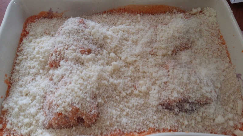 - Dans un bol mélanger la chapelure et le parmesan. Parsemer de chapelure au parmesan.