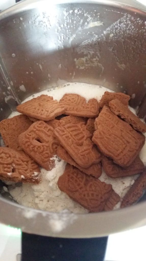 - Insérer le fouet dans le bol, puis mettre les œufs et le sucre fouetter 1 min/Vit3, à la sonnerie enlever le fouet puis mettre le beurre ramolli, la farine, la levure et les spéculoos.
