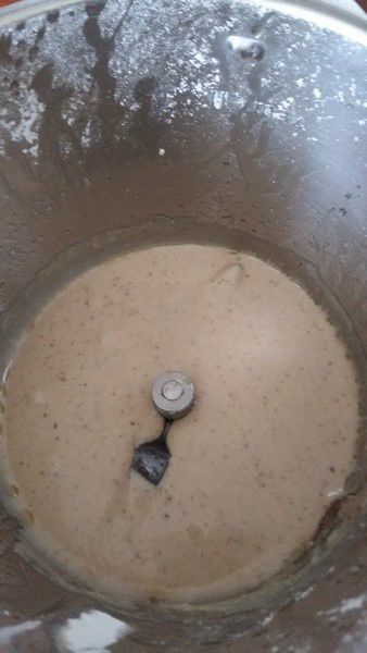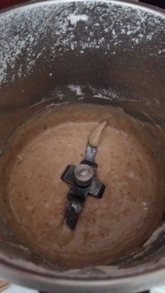 - Dans le bol du Thermomix mettre la farine, le sucre glace, la poudre d’amandes puis mélanger 30sec/Vit 4, ajouter les blancs d’œufs et a crème de marron puis mixer 15sec/Vit4. Racler les bords.