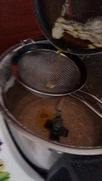 - Ajouter votre beurre noisette à la préparation en enlevant les impuretés à l’aide d’une passoire fine, puis mélanger à nouveau 1min/Vit3.