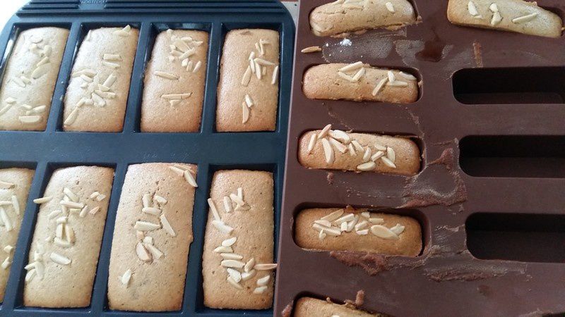 - Mettre dans les moules à financiers, puis parsemer de quelques amandes en bâtonnets.