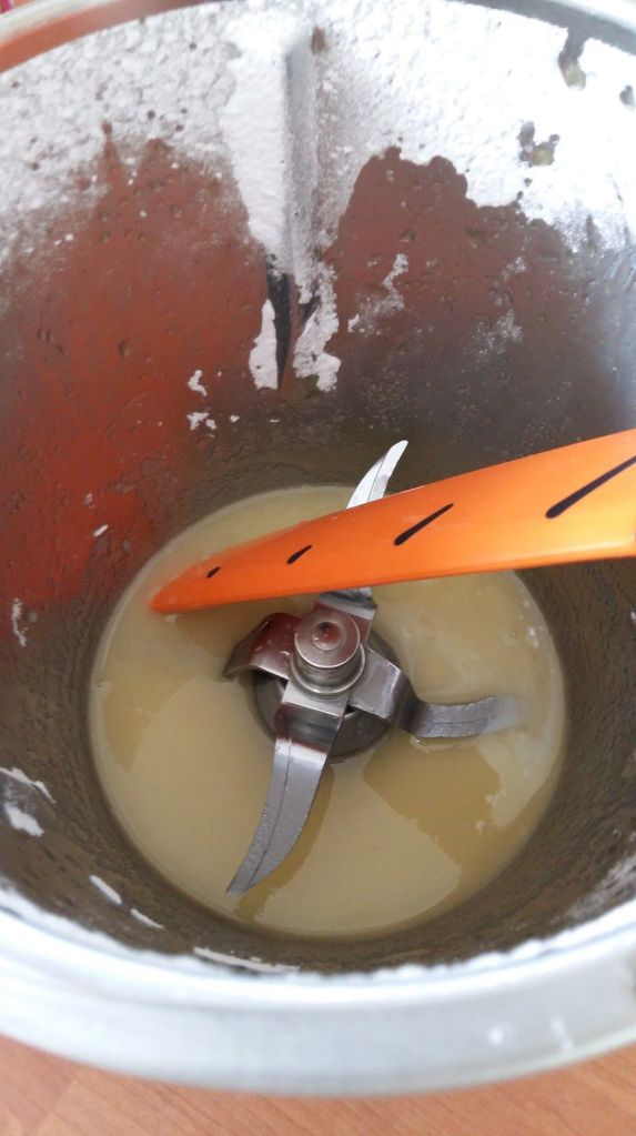 8. Pour le glaçage, mélanger le sucre glace ( mixer 10sec/Vit 9 100g de sucre semoule pour obtenir votre sucre glace ) et le jus d’orange 20sec/Vit3.