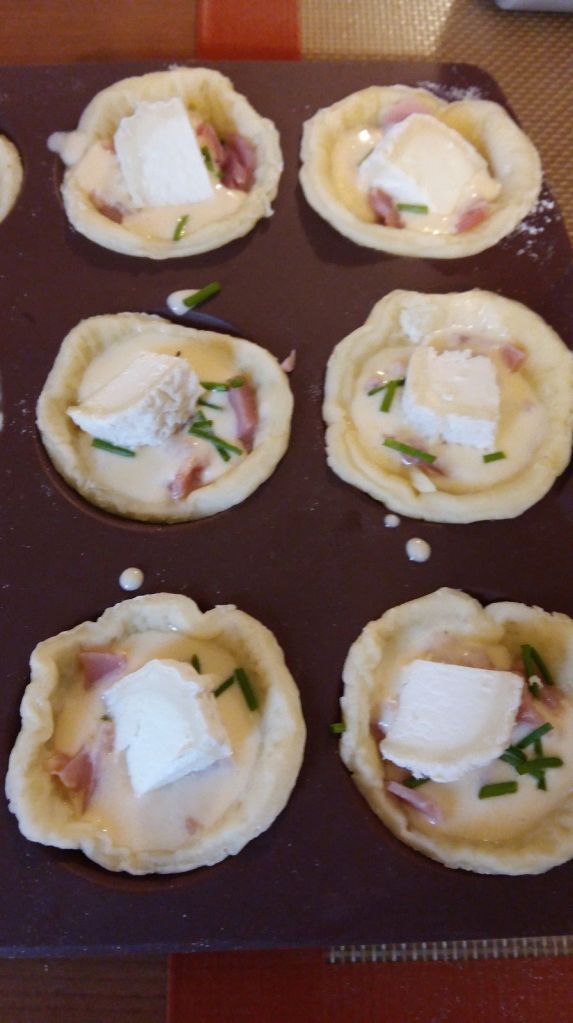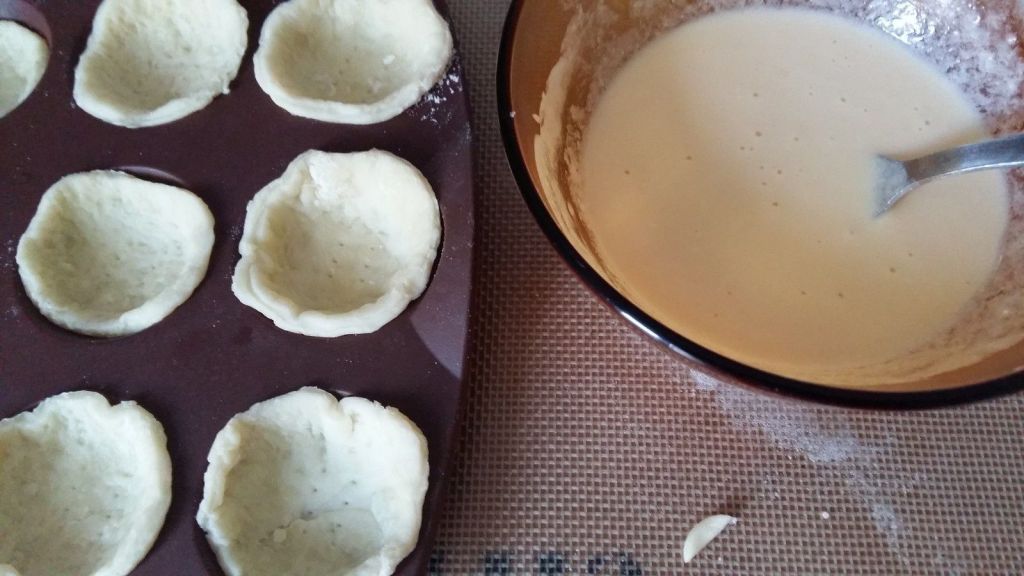- Foncer des minis moules à tarte de pâte brisée, donner quelques petits coups de fourchette, au fond.