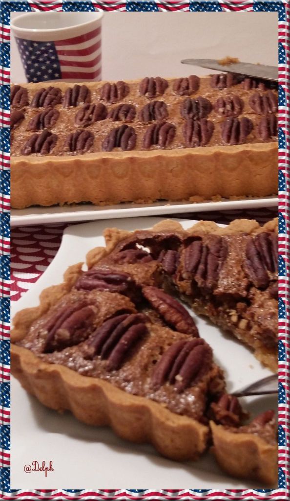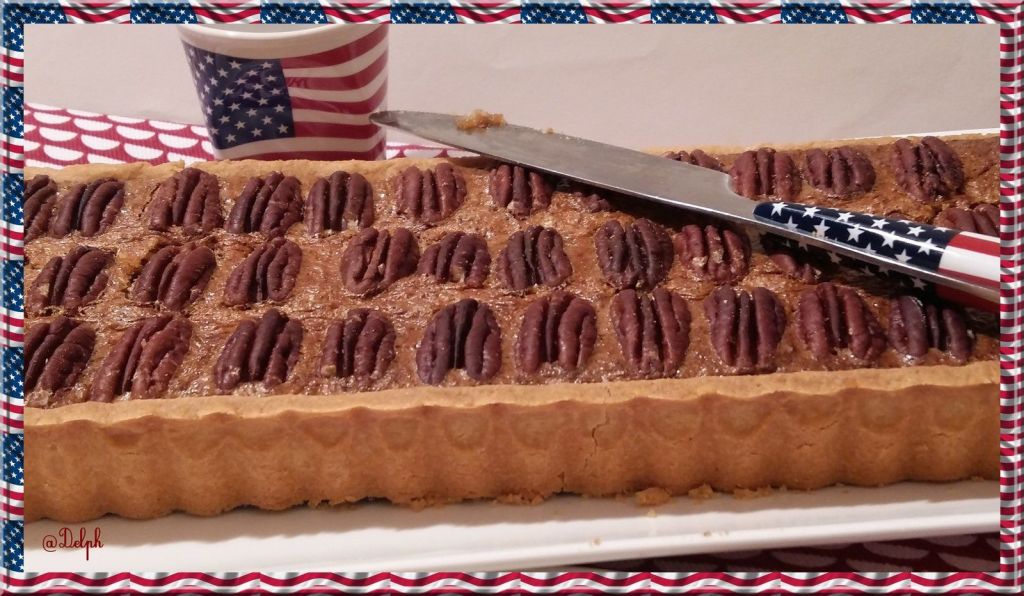 - Disposer les plus belles noix de pécan harmonieusement sur le dessus et enfourner pour 45 minutes. Dans les 10 dernières minutes poser une feuille de papier sulfurisé pour que les noix ne noircissent pas trop sur le dessus.