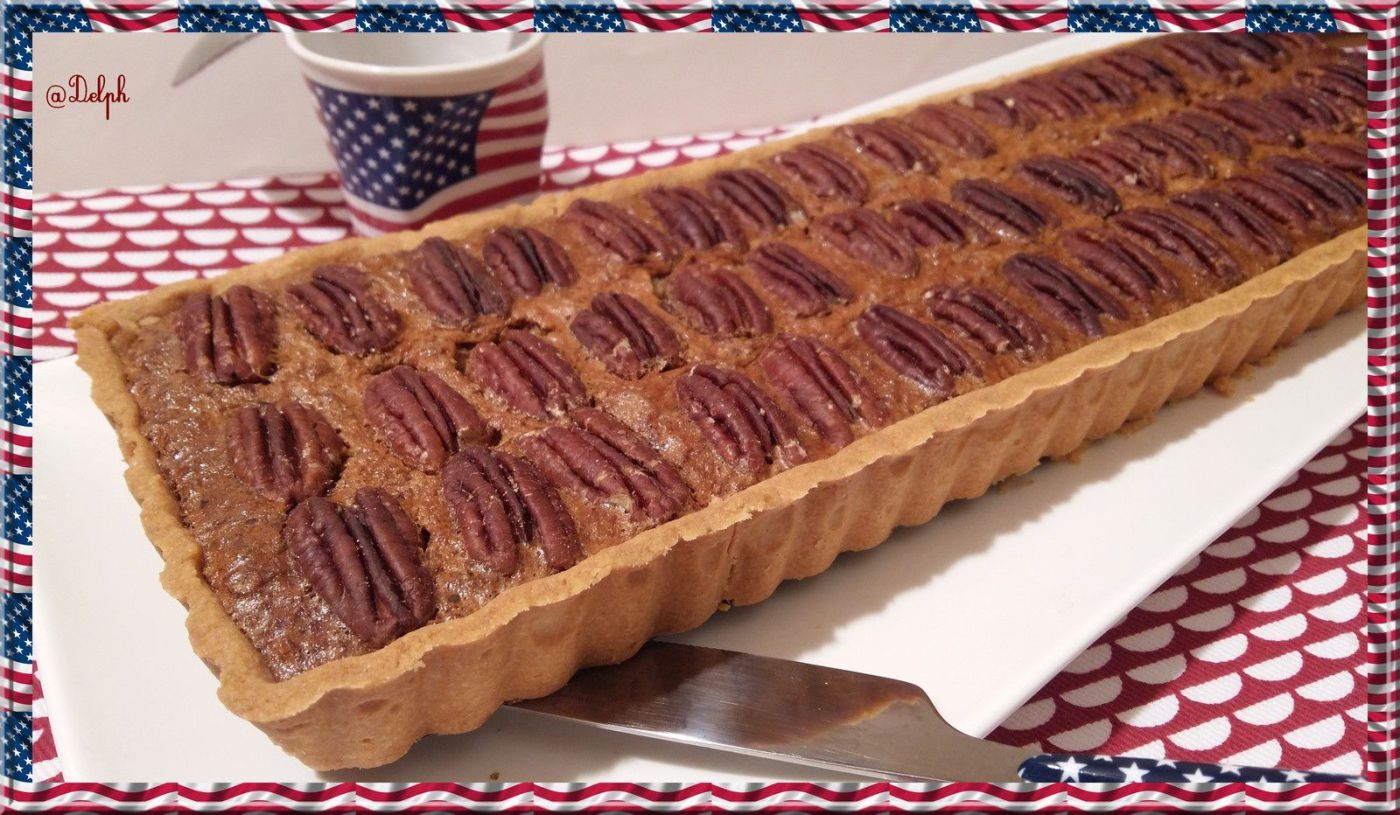 - Disposer les plus belles noix de pécan harmonieusement sur le dessus et enfourner pour 45 minutes. Dans les 10 dernières minutes poser une feuille de papier sulfurisé pour que les noix ne noircissent pas trop sur le dessus.