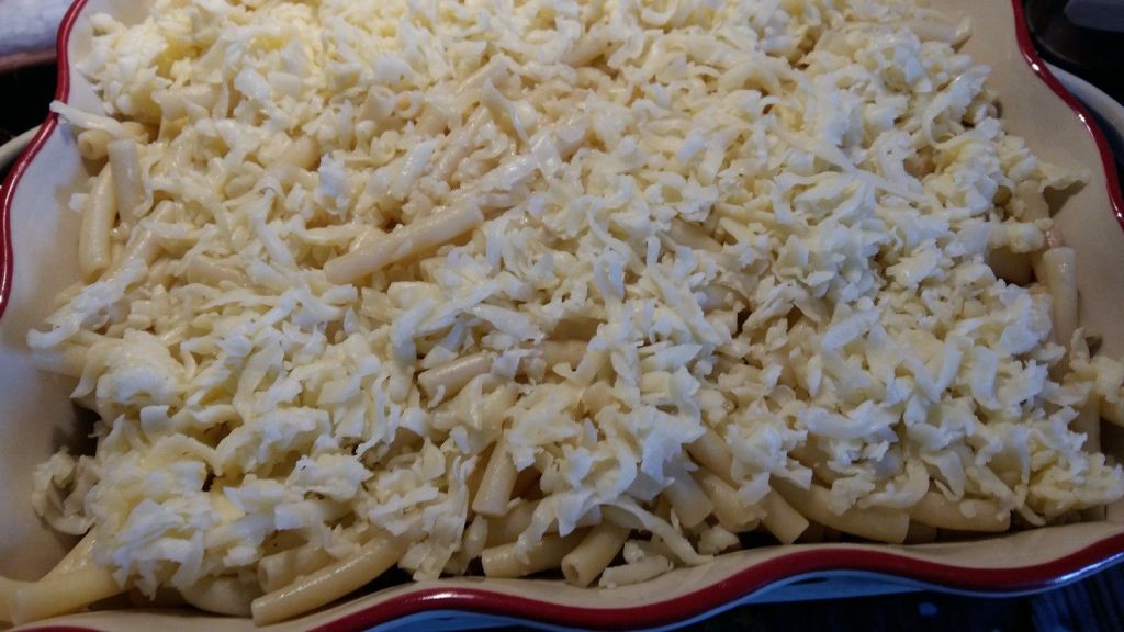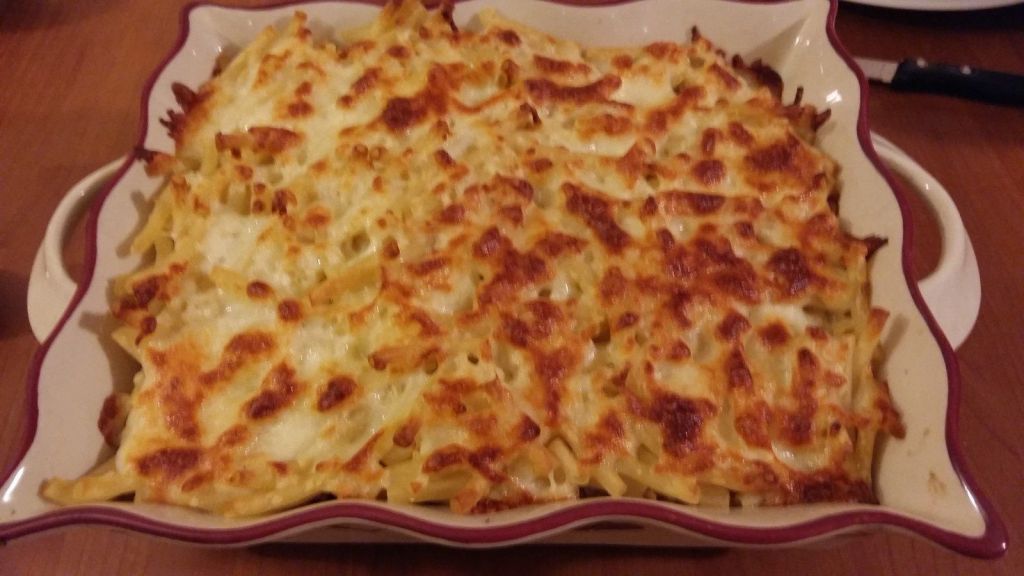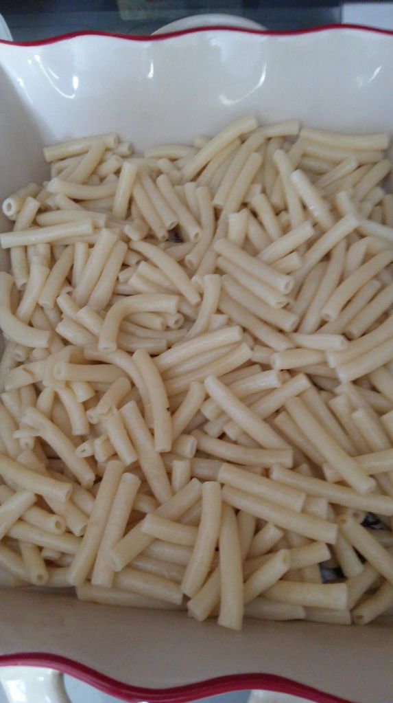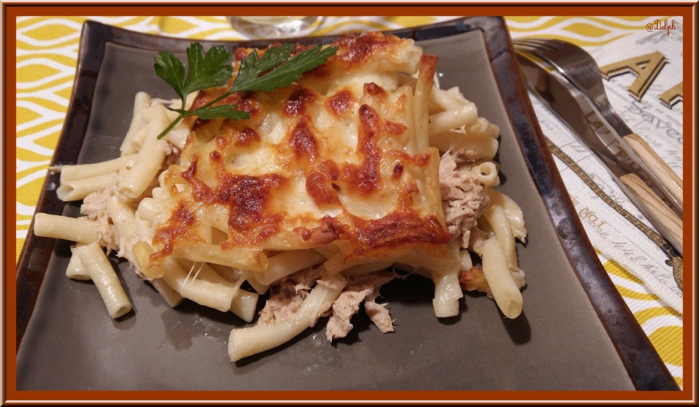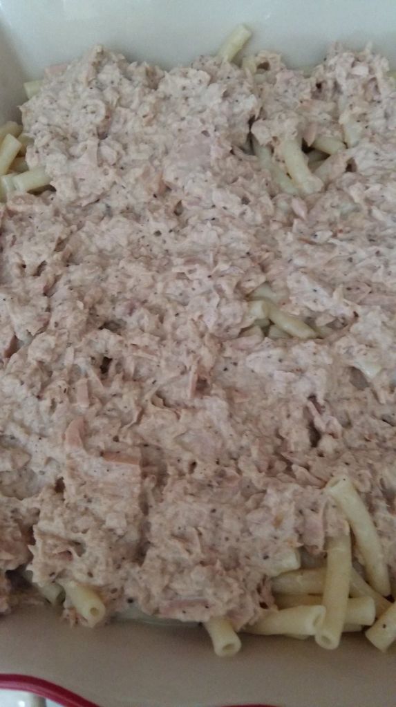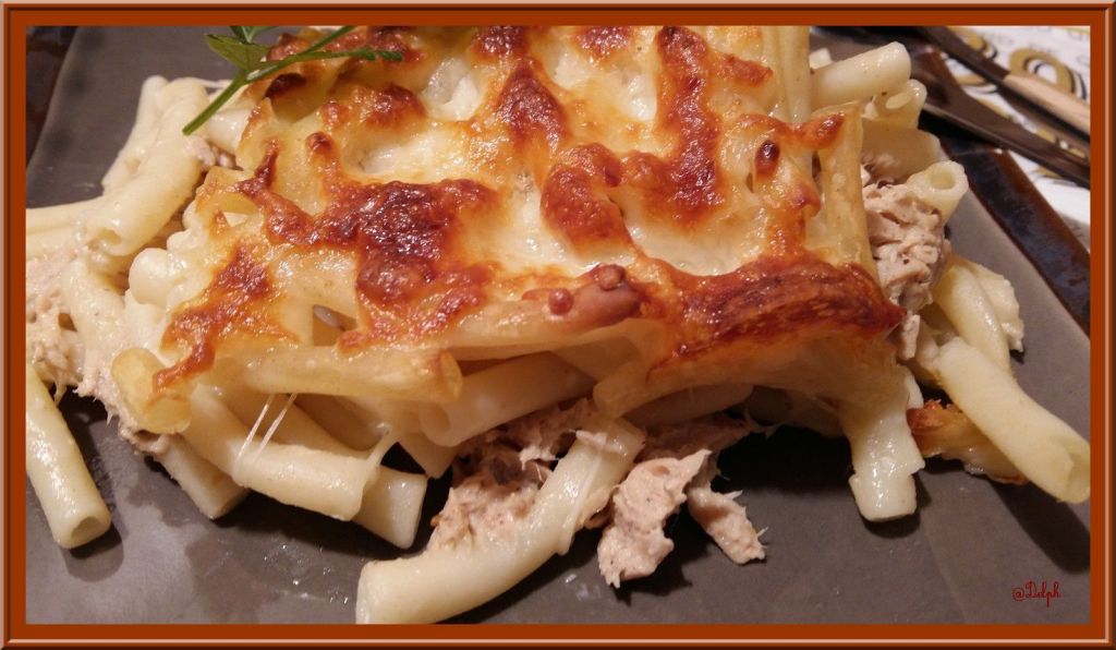 Pour faire plaisir à mon fiston, j’ai fait ce petit gratin de pâte, j’ai mis un peu de thon, pour changer du traditionnel jambon.